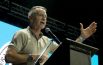 En el escenario solemne del encuentro anual de la AmCham, tres gobernadores se plantaron frente…