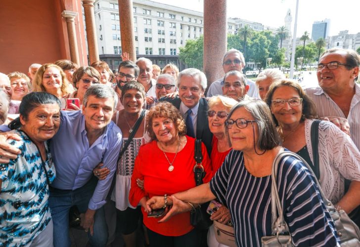 Fernández compartió una merienda en el Salón Eva Perón de Casa Rosada junto a un grupo de adultos mayores de distintos centros de jubilados del partido bonaerense de Hurlingham. Tras un recorrido por el Salón Blanco y otros espacios de Casa de Gobierno, los jubilados se reunieron con el Presidente. Del encuentro participó el intendente de esa localidad del norte del conurbano bonaerense Juan Zabaleta.
