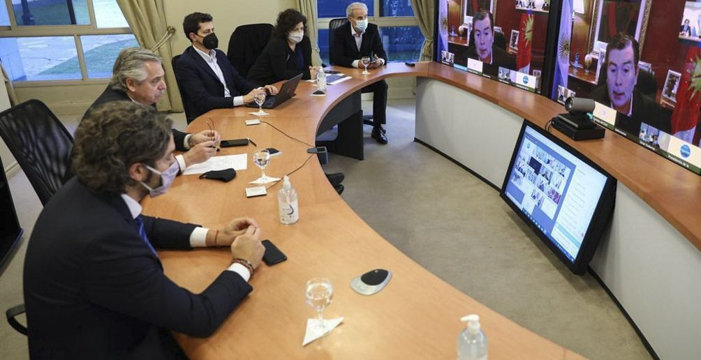 Alberto Fernández se reunió virtualmente con los gobernadores de todas las provincias para coordinar la campaña de vacunación que, según lo acordado, comenzará este martes 29 de noviembre. Presentes en la residencia de Olivos, también estuvieron el ministro de Salud, Ginés González García, la secretaria de Acceso a la Salud, Carla Vizzotti, el Jefe de Gobierno porteño Horacio Rodríguez Larreta, el ministro del Interior, Eduardo “Wado” de Pedro, el secretario general de la Presidencia, Julio Vitobello, y el secretario de Comunicación y Prensa de la Presidencia, Juan Pablo Biondi. “La idea es que cuando llegue el otoño tengamos vacunada a la mayor cantidad de gente en riesgo, ese es mi objetivo. Mientras tanto, debemos cuidarnos y que nuestros compatriotas entiendan que el riesgo está latente y que hay que evitar las aglomeraciones como las de los últimos días”, sostuvo el Jefe de Estado desde Olivos. Además destacó la cantidad de dosis que se están distribuyendo y dijo que “tuvimos una enorme posibilidad de acceder como nadie en el mundo de la periferia ha accedido”, agregando que “debemos seguir trabajando muy unidos porque la única preocupación que tenemos que tener es garantizar la salud de los argentinos, y en eso no tenemos bandería política”. Las dosis llegarán el lunes próximo en camión refrigerado a todo el país, menos a Santa Cruz y Tierra del Fuego, donde arribarán en aviones. En la videoconferencia que mantuvieron todos los mandatarios provinciales expresaron sus felicitaciones por el comienzo del plan de vacunación contra el Covid-19. El gobernador de Jujuy, Gerardo Morales aseguró que “la gente está con expectativa de la vacuna, porque tiene expectativa de que esto se resuelva definitivamente. Sigamos trabajando como un único equipo”.