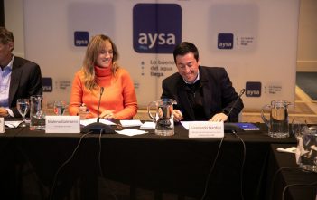 La presidenta de AySA, Malena Galmarini junto al ministro del Interior, Eduardo “Wado” de Pedro;…